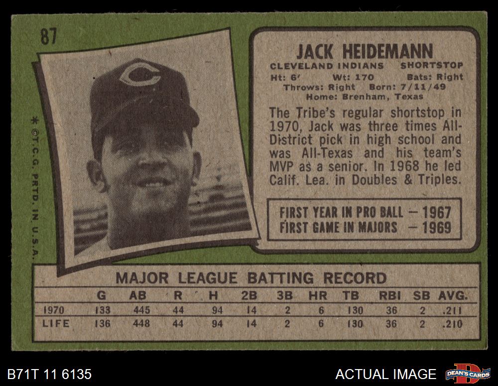1971 Topps #87 Jack Heidemann 4 - VG/EX