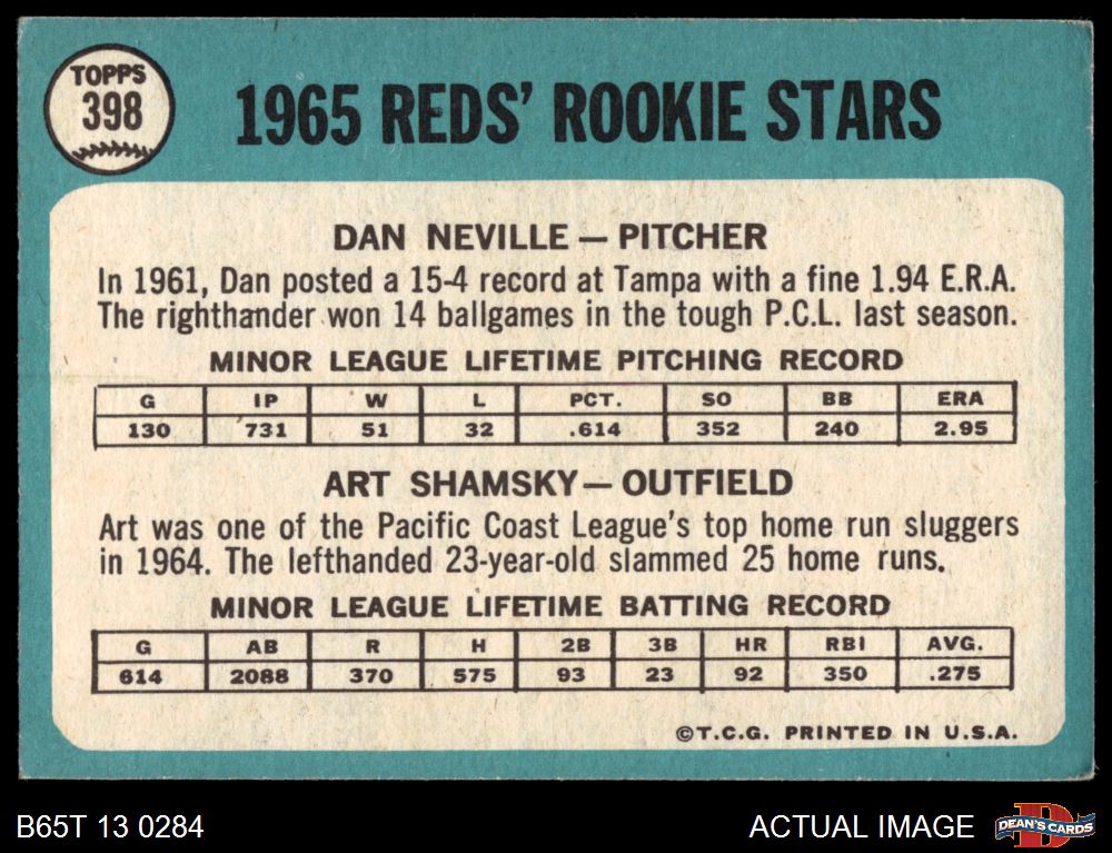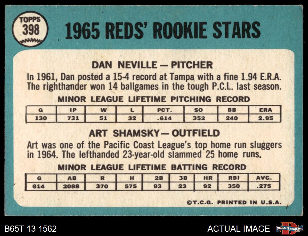 1965 Topps #398 - Art Shamsky / Dan Neville Reds Rookies 3 - VG