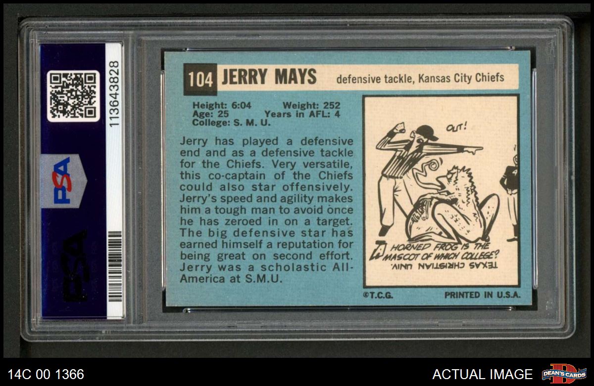 1964 Topps #104 Jerry Mays PSA 6 - EX/MT