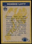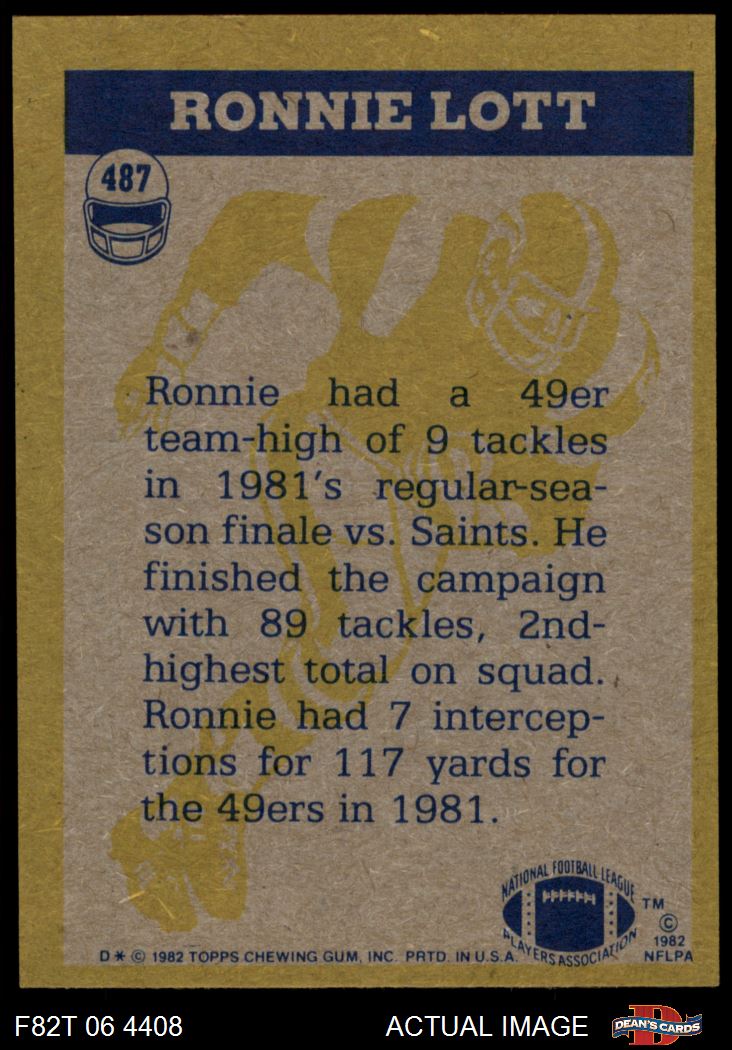 1982 Topps #487 - Ronnie Lott In Action 7 - NM