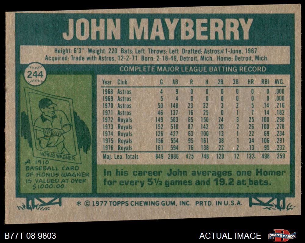 1977 Topps #244 John Mayberry 3 - VG
