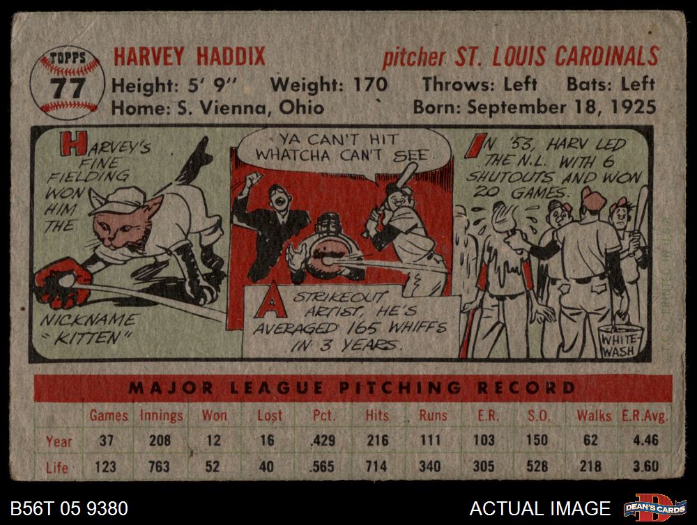 1956 Topps #77 Harvey Haddix 1.5 - FAIR