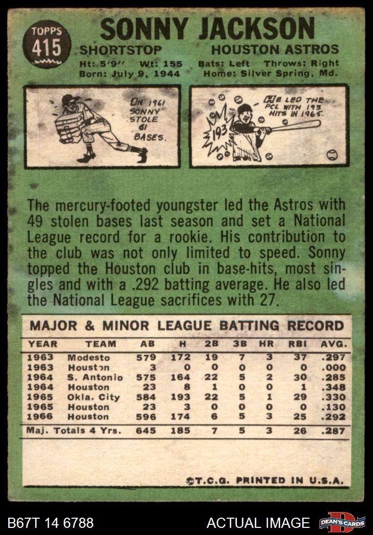 1967 Topps #415 Sonny Jackson 1.5 - FAIR
