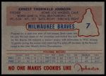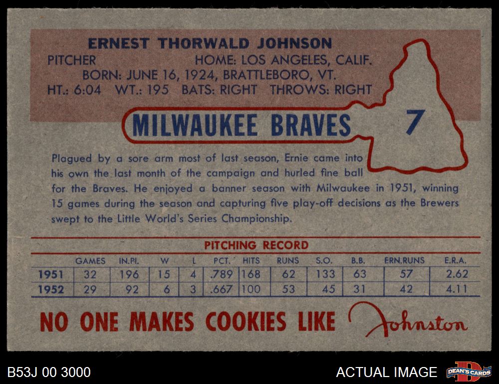 1953 Johnston Cookies #7 Ernie Johnson 6 - EX/MT