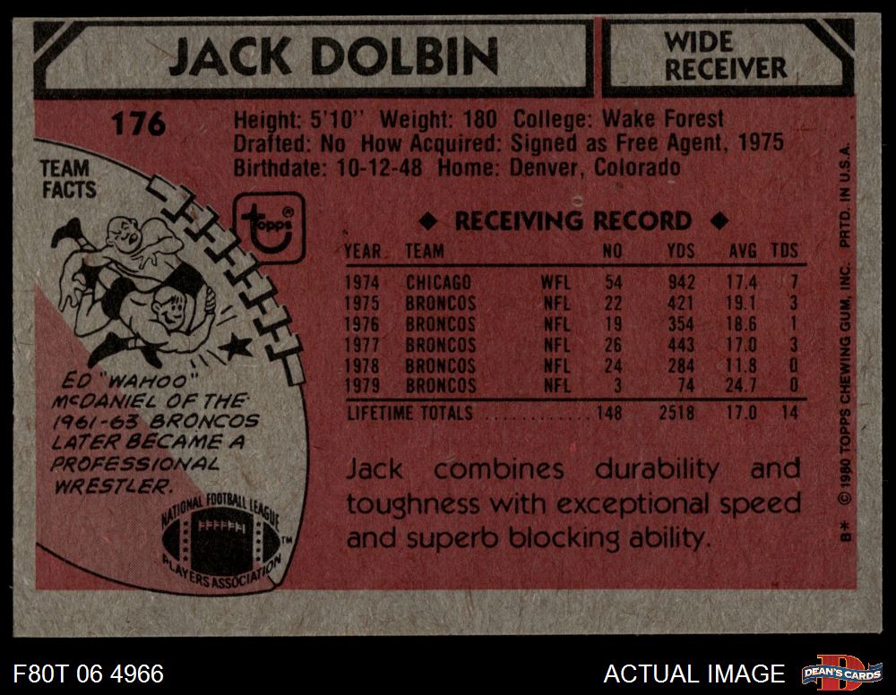 1980 Topps #176 Jack Dolbin