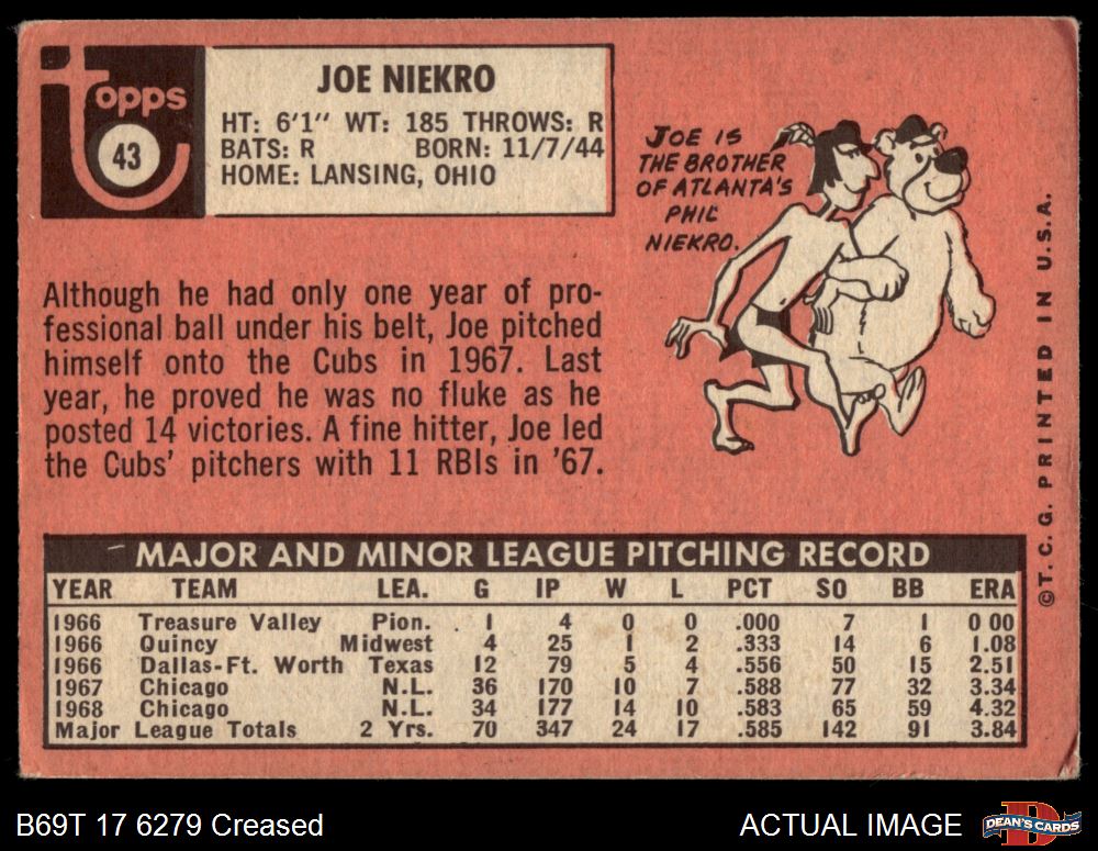 1969 Topps #43 Joe Niekro 2 - GOOD