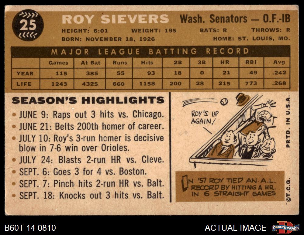 1960 Topps #25 Roy Sievers Front Thumbnail