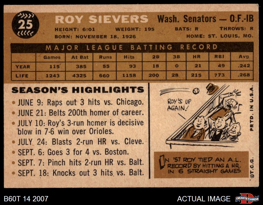 1960 Topps #25 Roy Sievers 4 - VG/EX