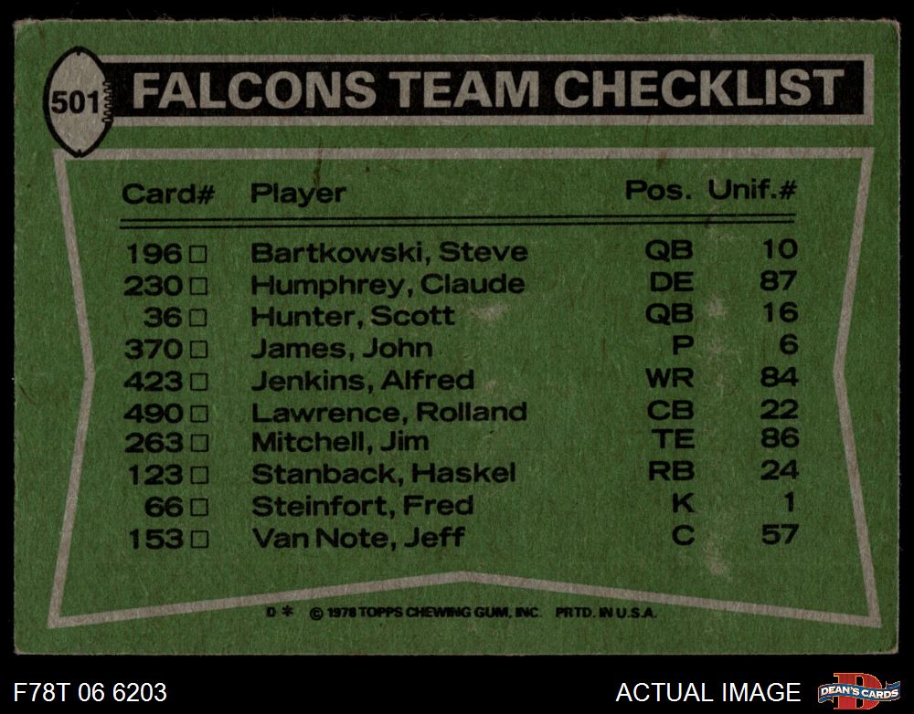 1978 Topps Football Cards (7,515 available)1978 Topps Falcons (198 available)