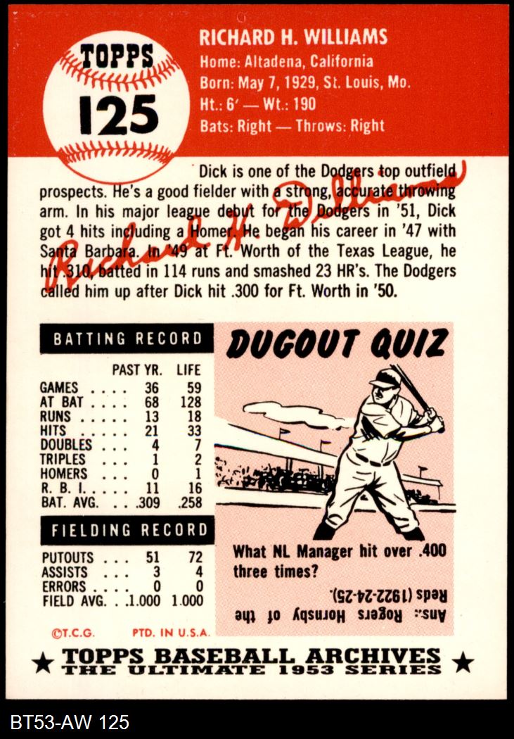 1953 Topps Archives #125 Dick Williams 8 - NM/MT