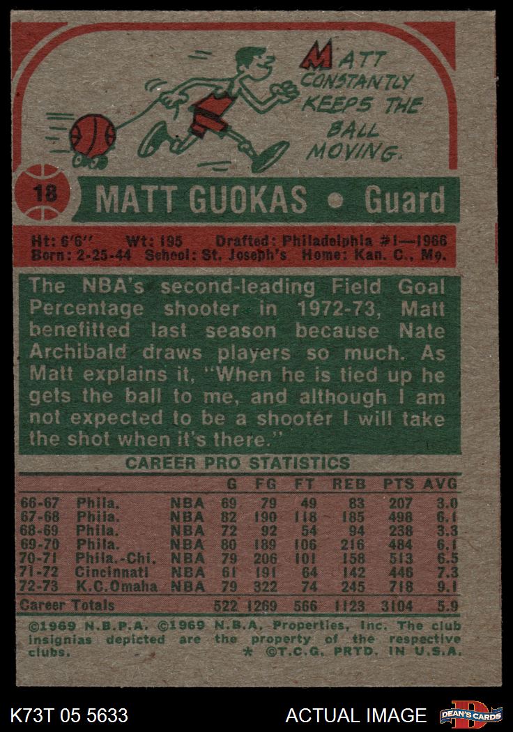 1973 Topps #18 Matt Guokas 3 - VG