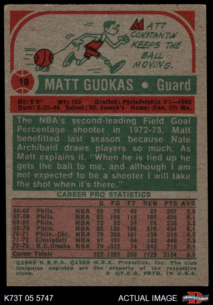 1973 Topps #18 Matt Guokas 6 - EX/MT