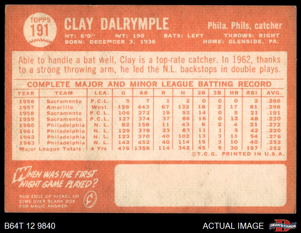 1964 Topps #191 Clay Dalrymple