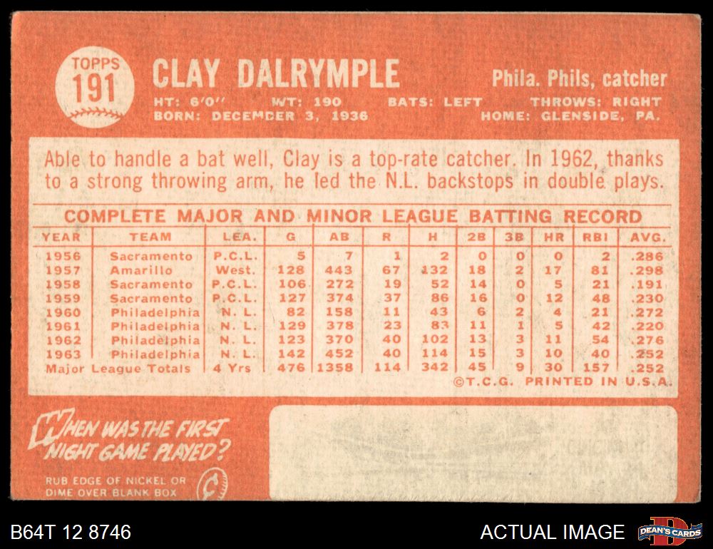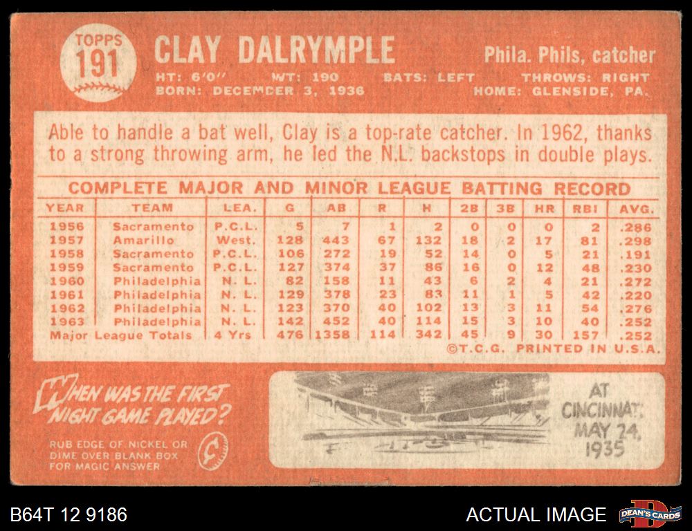 1964 Topps #191 Clay Dalrymple 2 - GOOD