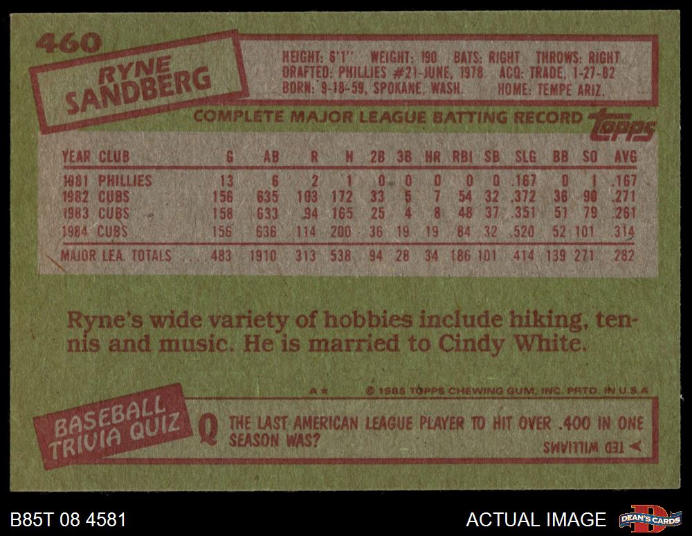 1985 Topps Baseball Cards (11,227 available)1985 Topps Cubs (447 available)