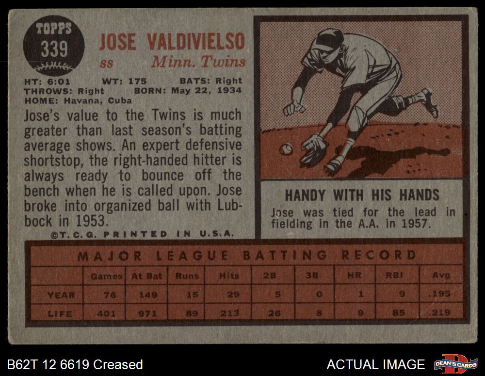 1962 Topps #339 Jose Valdivielso Front Thumbnail