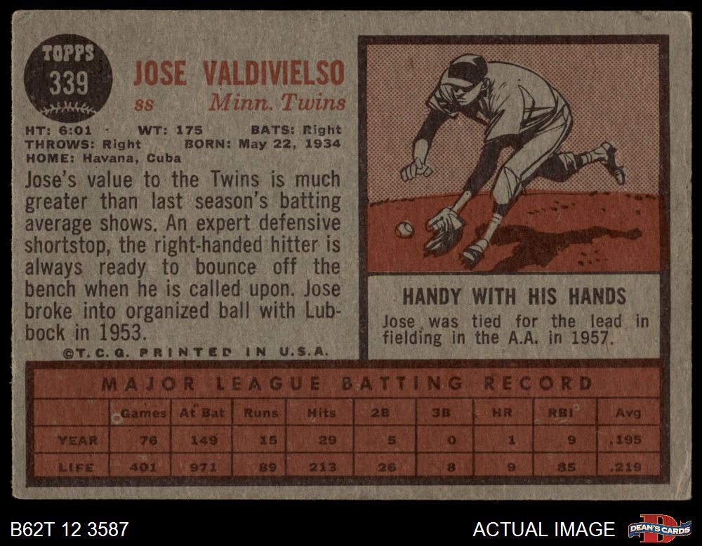 1962 Topps #339 Jose Valdivielso 3 - VG