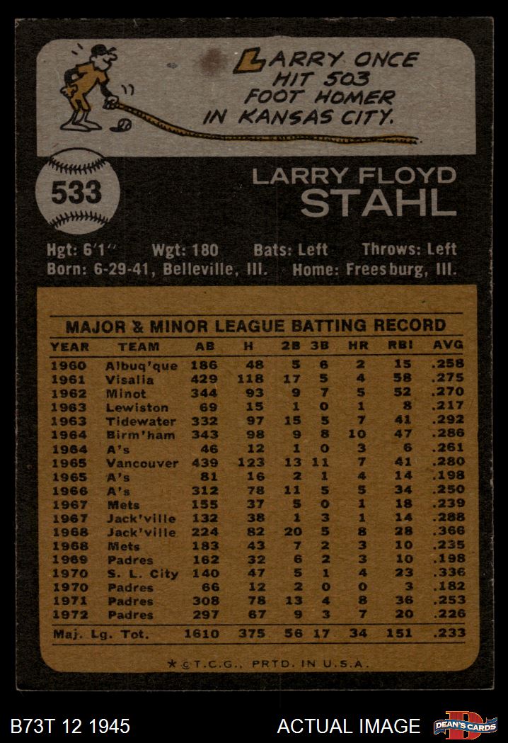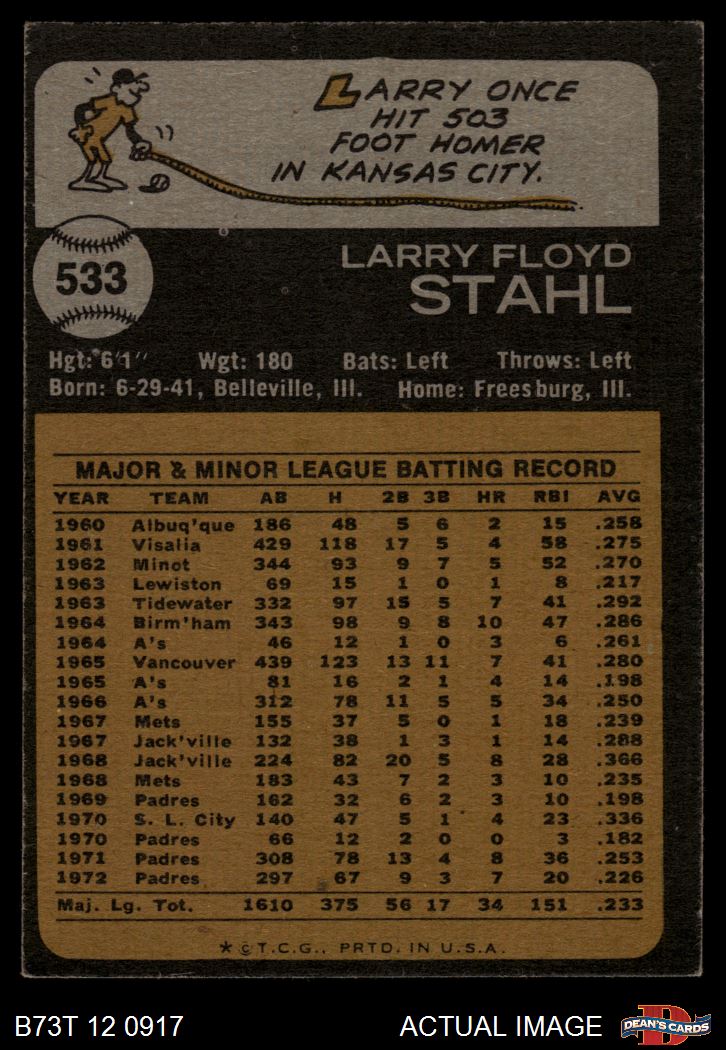 1973 Topps #533 Larry Stahl 4 - VG/EX