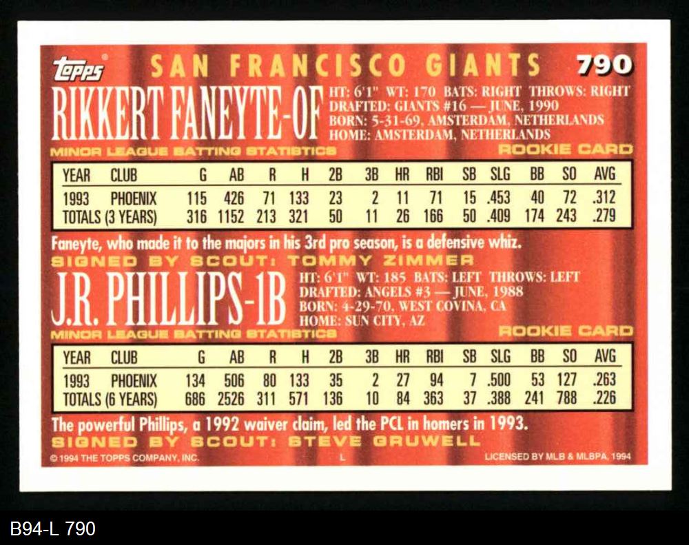 1994 Topps #790 - Joe Phillips / Rikkert Faneyte Coming Attractions 8 - NM/MT