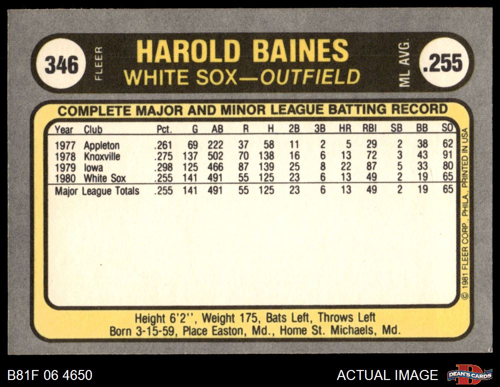 1981 Fleer #346 Harold Baines 8 - NM/MT