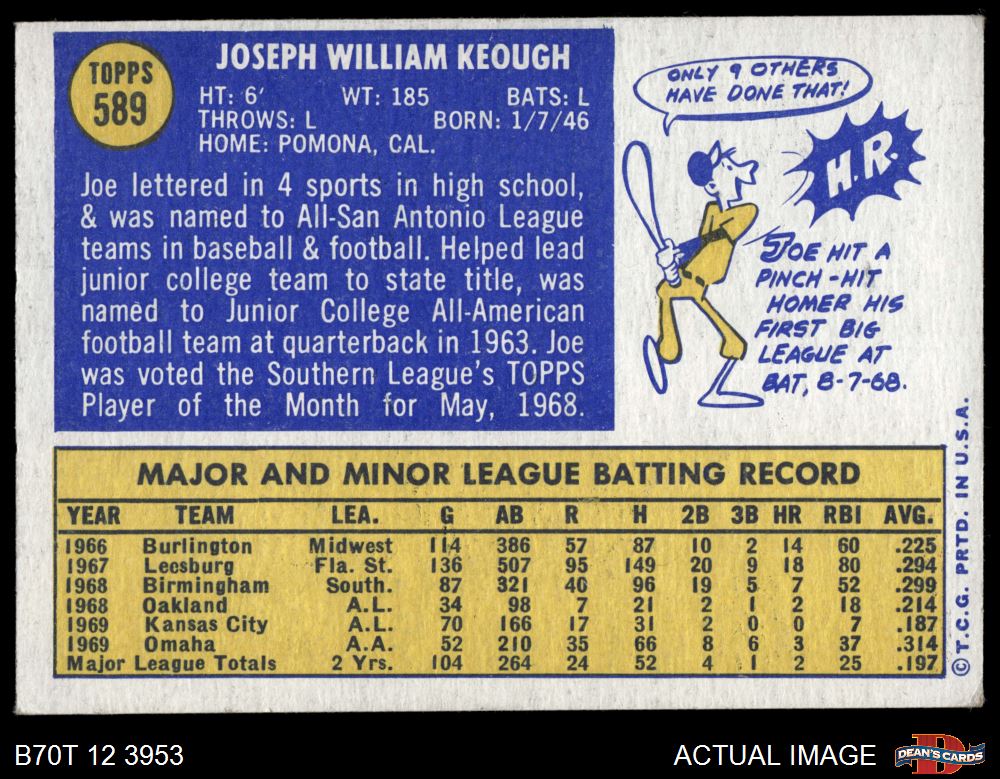 1970 Topps #589 Joe Keough 6 - EX/MT