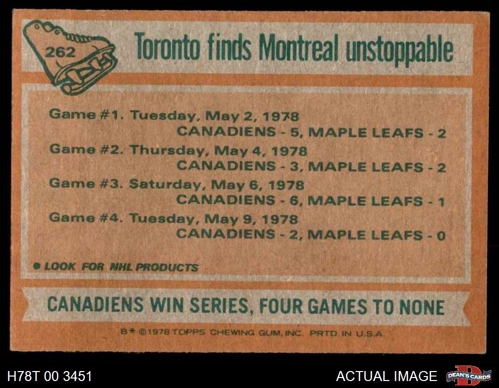1978 Topps #262 Stanley Cup Semi-finals - Canadiens Sweep Maple Leafs 1.5 - FAIR
