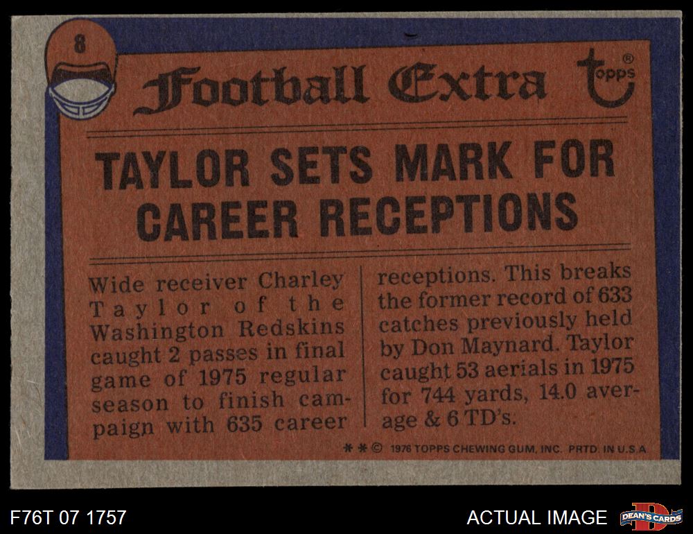1976 Topps #8 - Charley Taylor Record Breaker 3 - VG