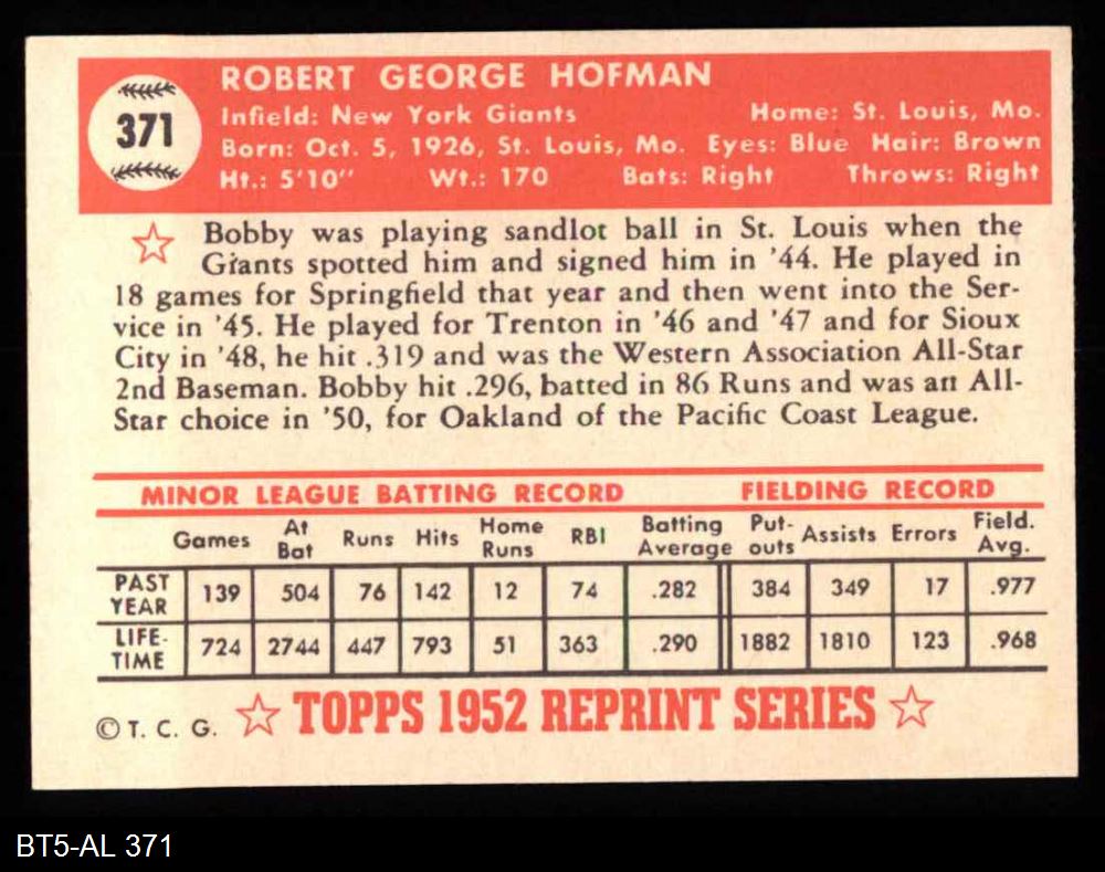 1952 Topps REPRINT #371 Bobby Hofman 8 - NM/MT