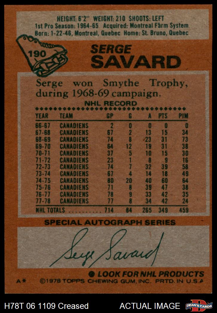 1978 Topps #190  -  Serge Savard All-Star Front Thumbnail