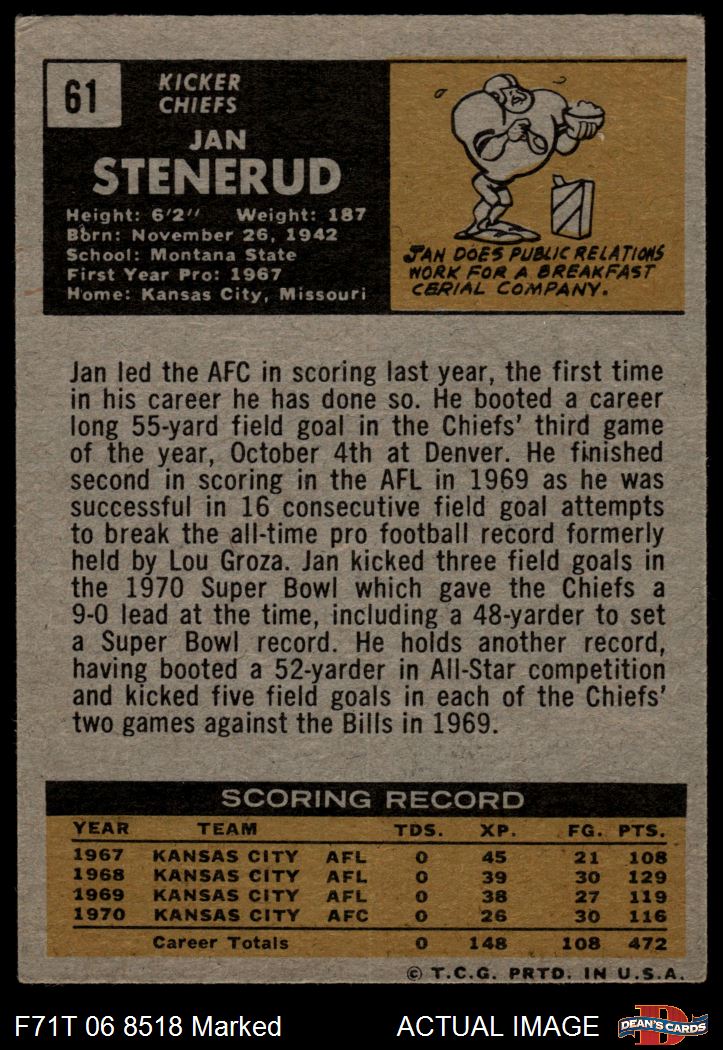 1971 Topps #61 Jan Stenerud 1.5 - FAIR
