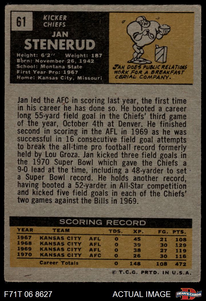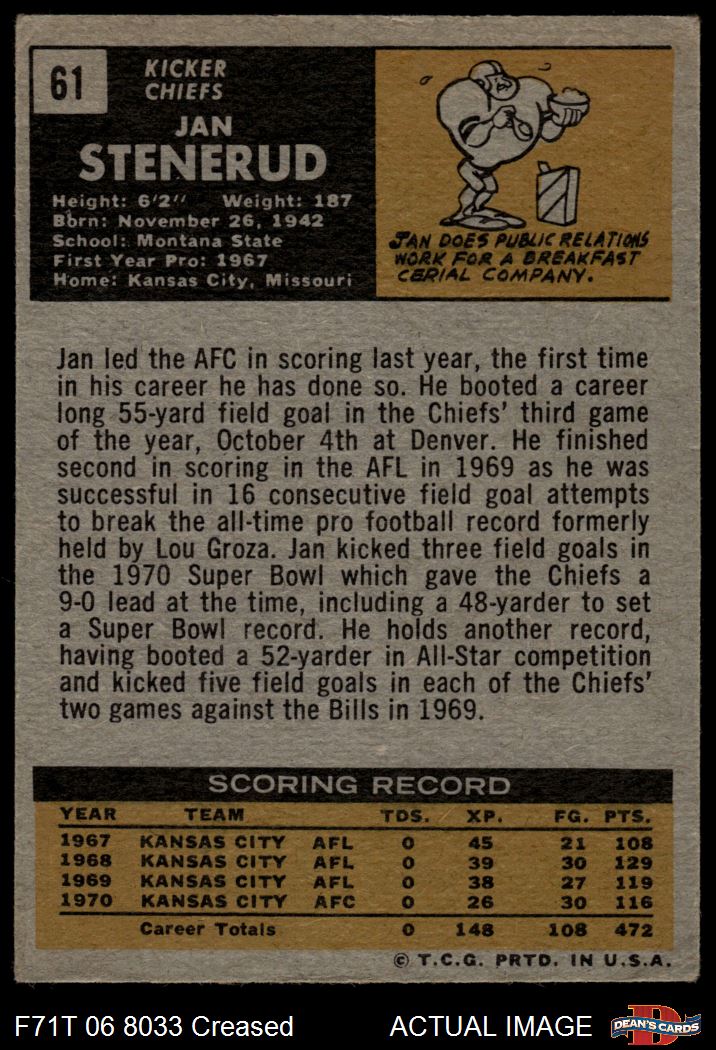 1971 Topps #61 Jan Stenerud 2 - GOOD