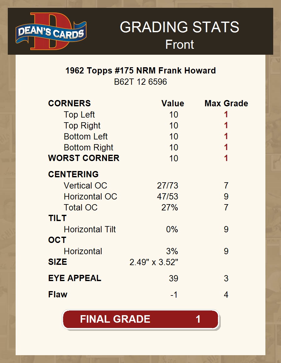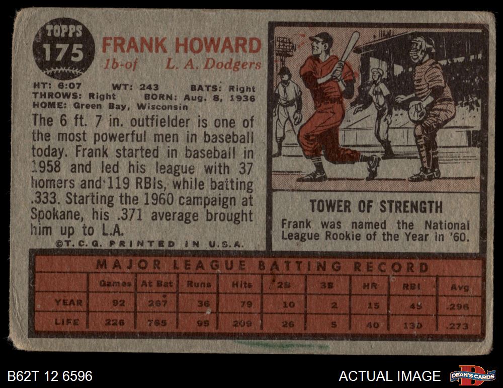 1962 Topps #175 NRM Frank Howard