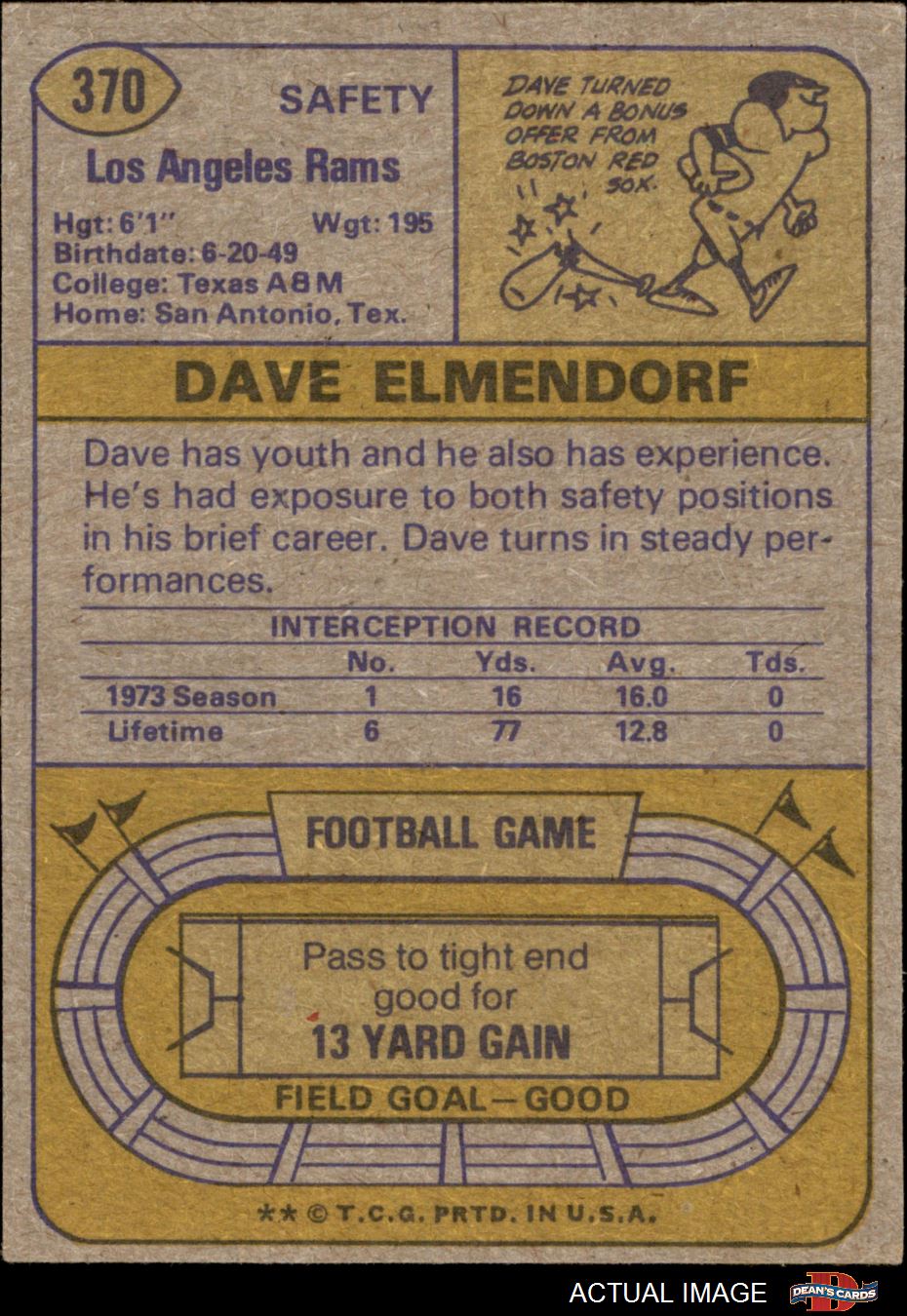 1974 Topps #370 Dave Elmendorf 4 - VG/EX