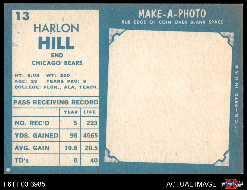 1961 Topps #13 Harlon Hill 6 - EX/MT