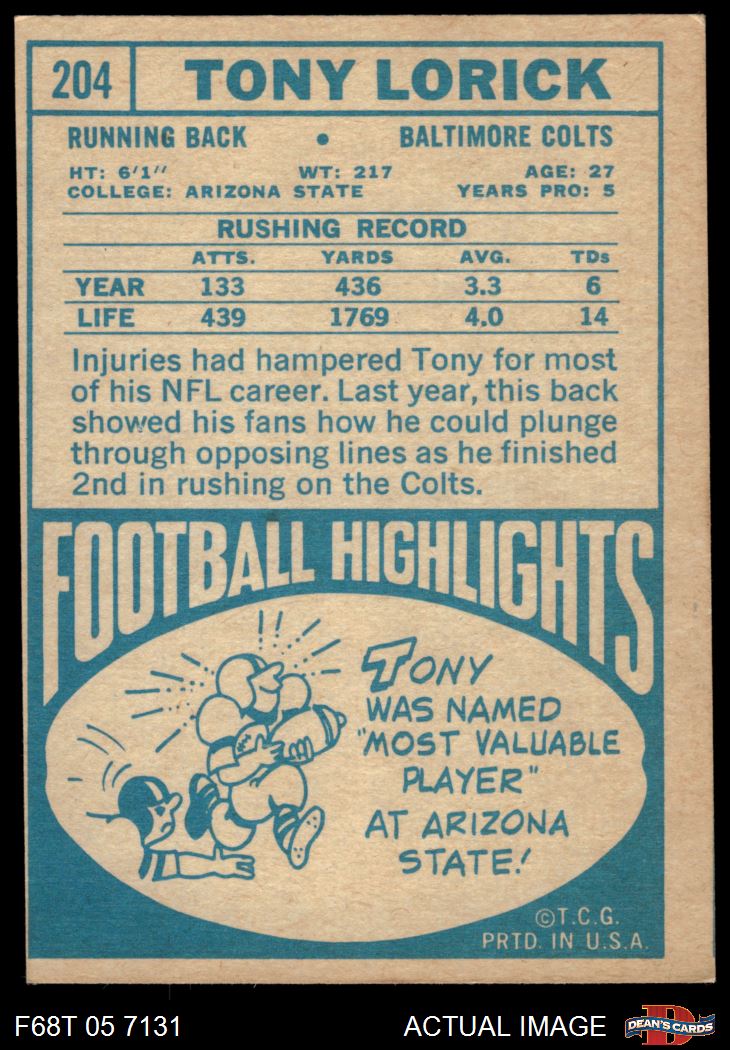 1968 Topps #204 Tony Lorick 3 - VG