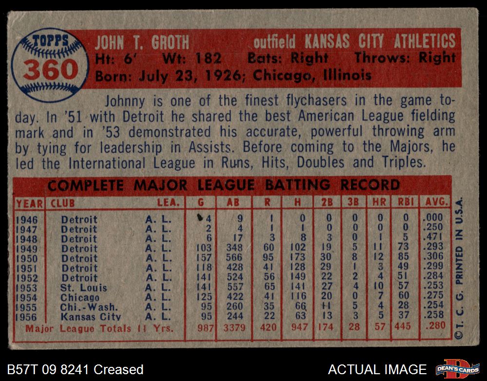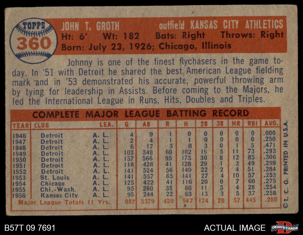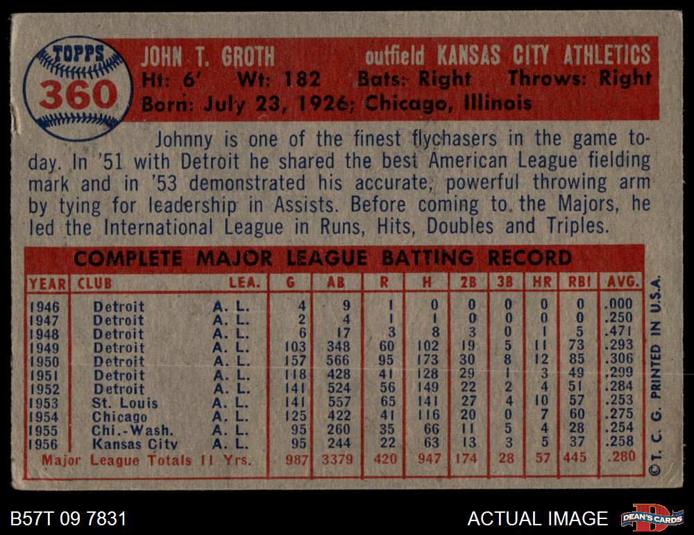 1957 Topps #360 Johnny Groth