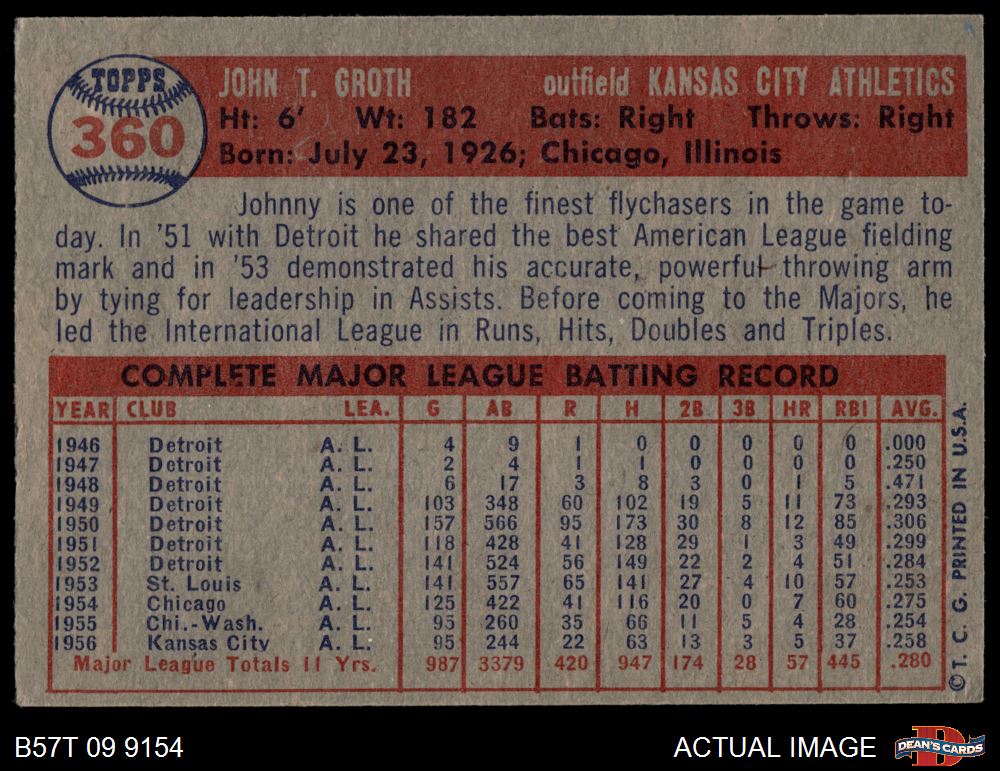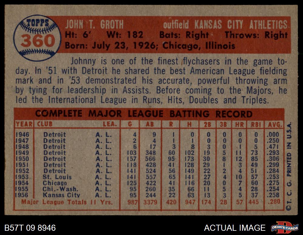 1957 Topps #360 Johnny Groth 4 - VG/EX