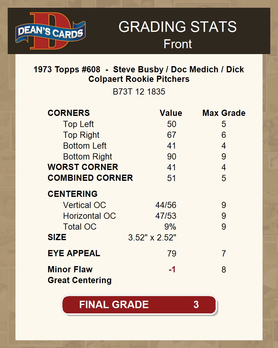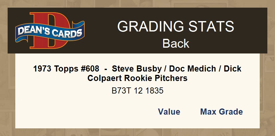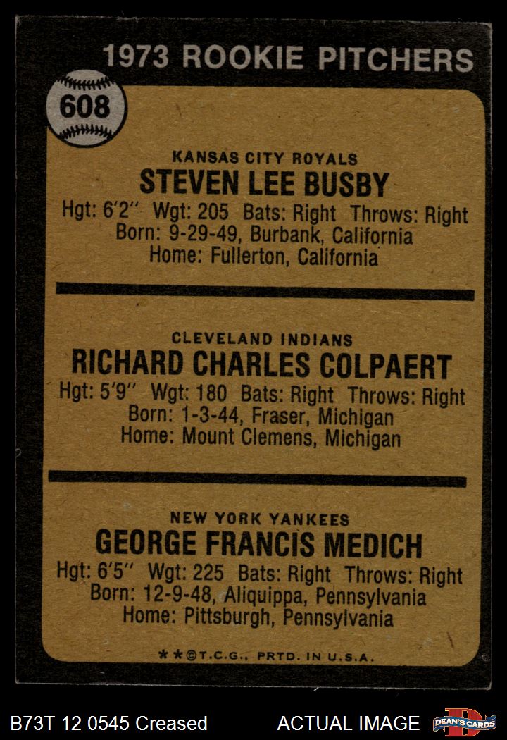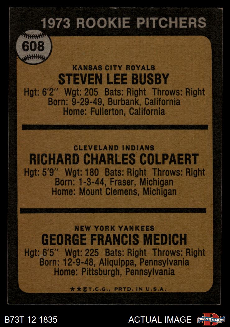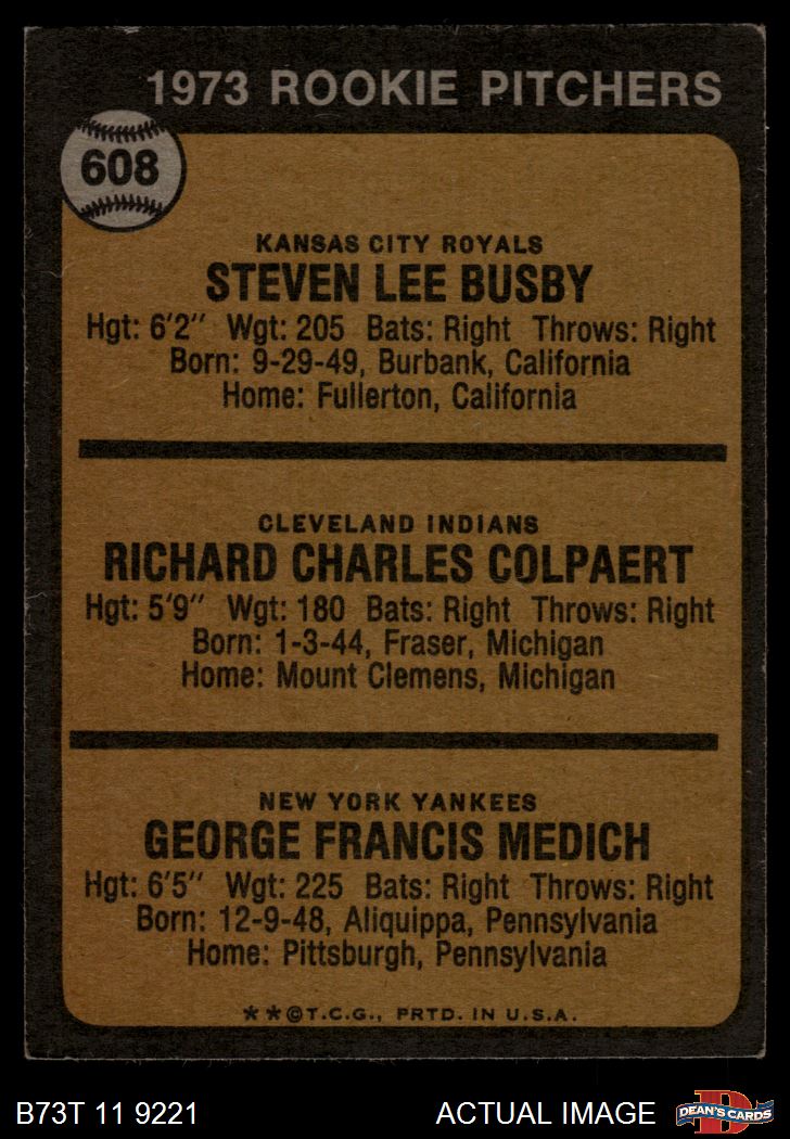 1973 Topps #608 - Steve Busby / Doc Medich / Dick Colpaert Rookie Pitchers 3 - VG