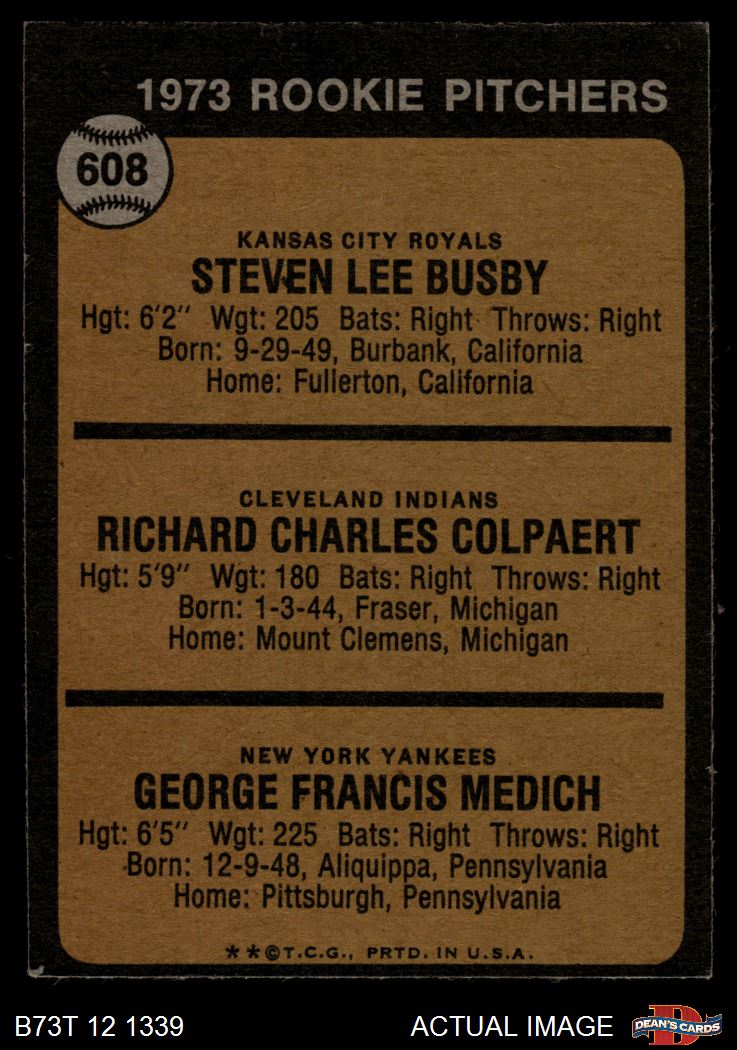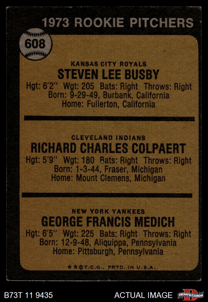 1973 Topps #608 - Steve Busby / Doc Medich / Dick Colpaert Rookie Pitchers 4 - VG/EX
