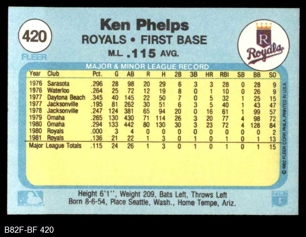 1982 Fleer #420 Ken Phelps 8 - NM/MT