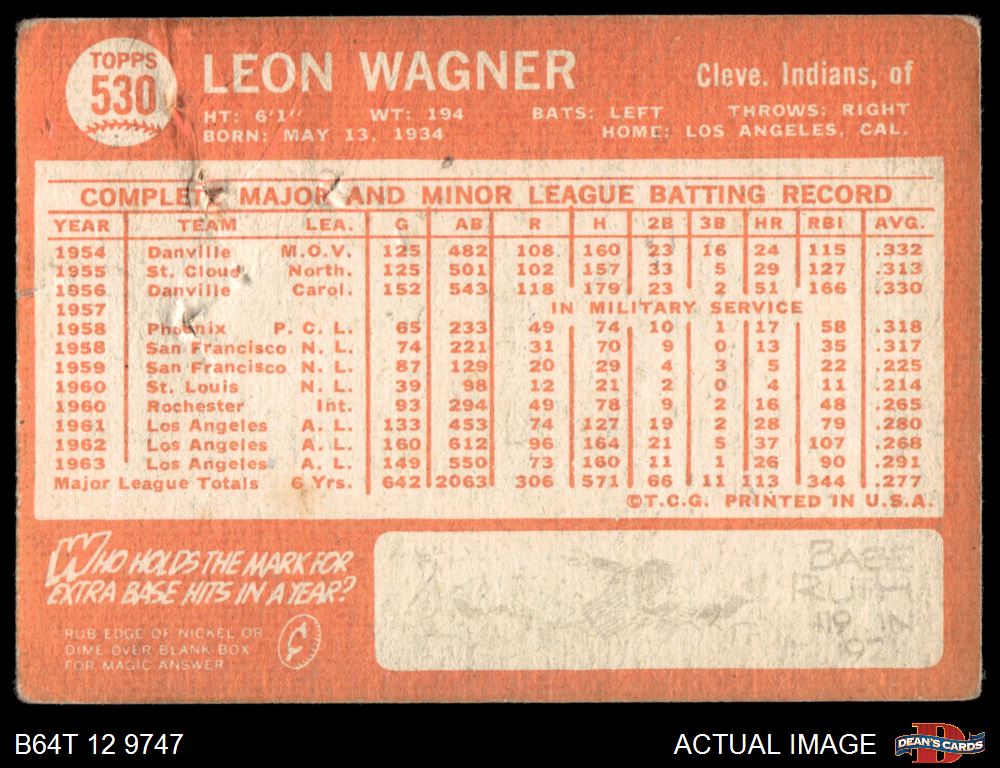 1964 Topps #530 Leon Wagner AUTHENTIC