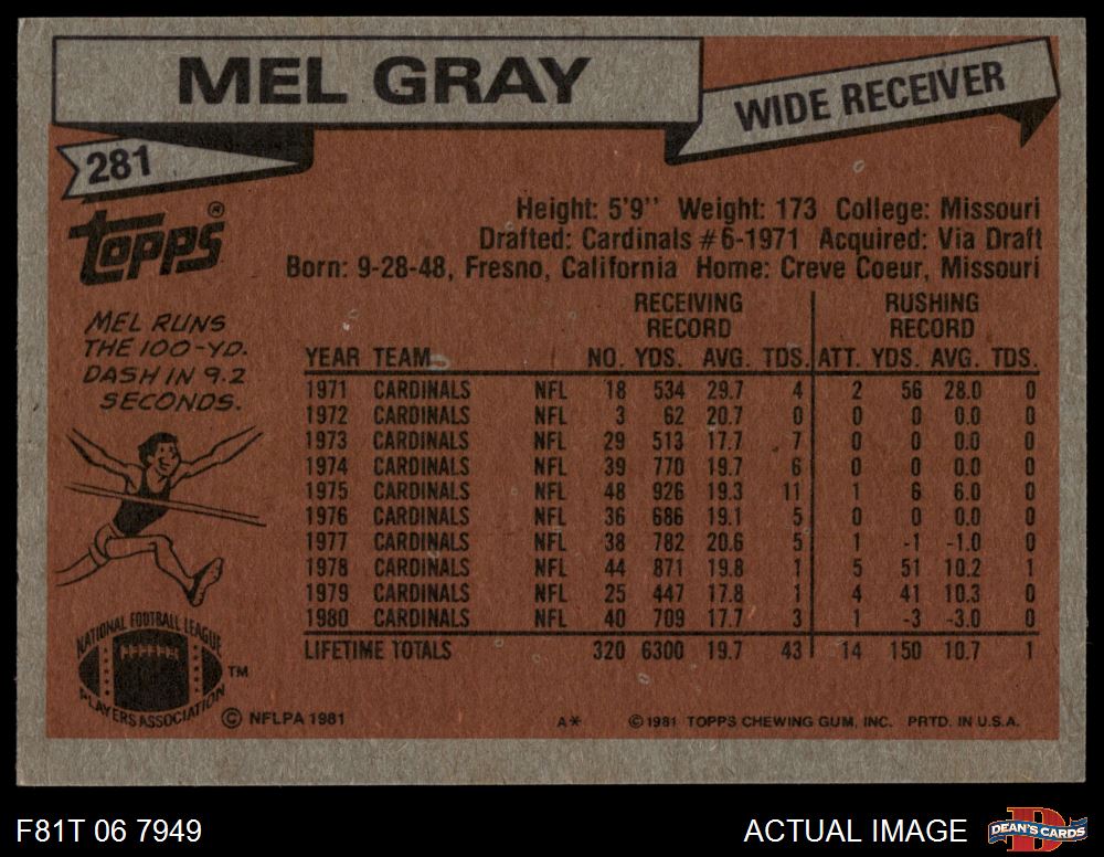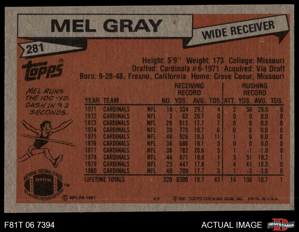 1981 Topps #281 Mel Gray 5 - EX