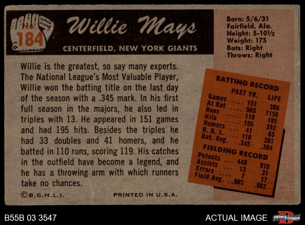 1955 Bowman #184 Willie Mays 1.5 - FAIR