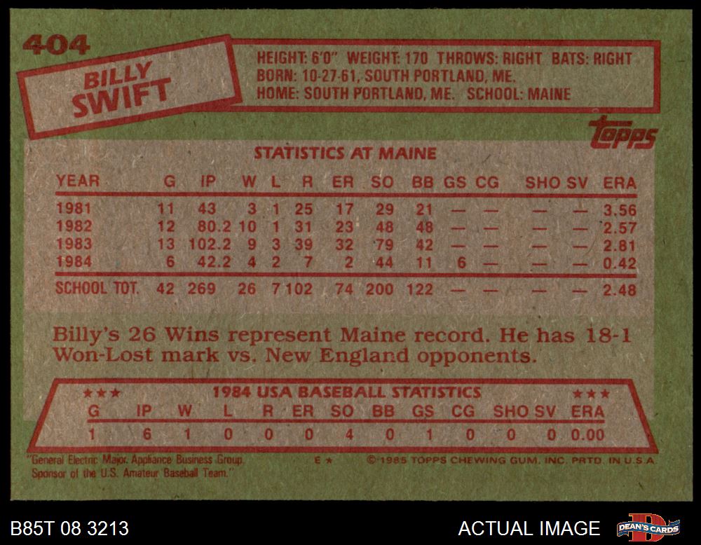 1985 Topps #404 - Bill Swift Team USA 8 - NM/MT
