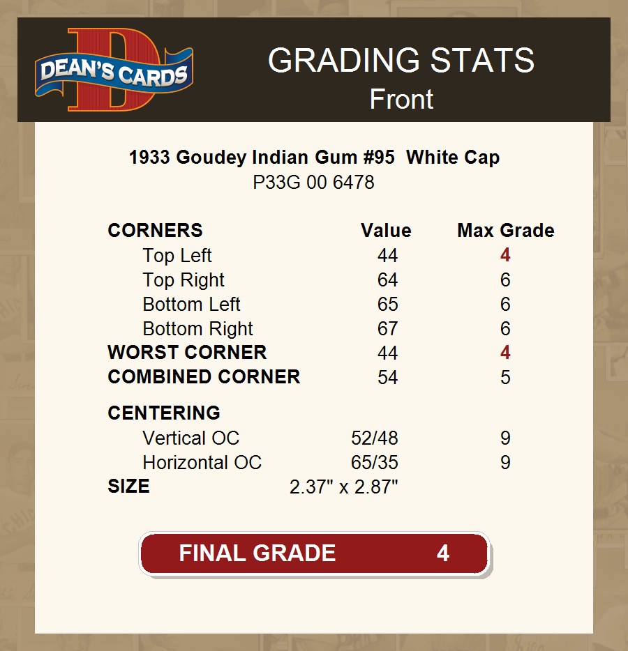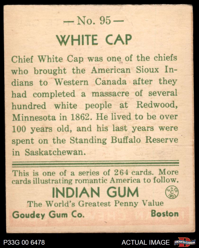 1933 Goudey Indian Gum #95 White Cap 4 - VG/EX