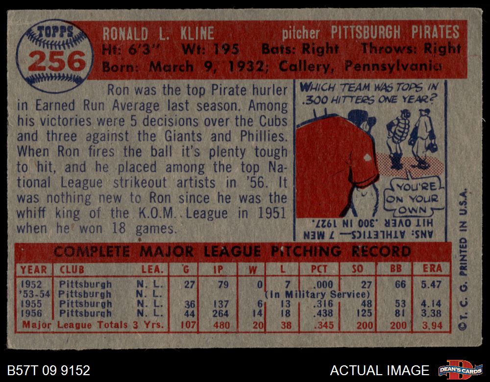 1957 Topps #256 Ron Kline