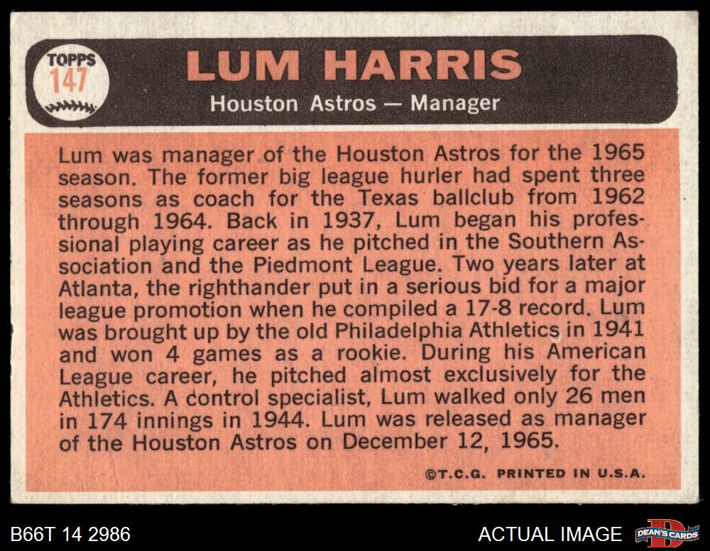 1966 Topps #147 Lum Harris 4 - VG/EX