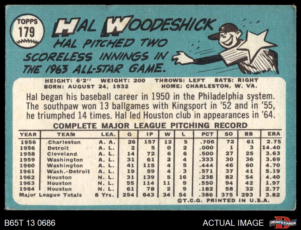1965 Topps #179 Hal Woodeshick 2.5 - GD+