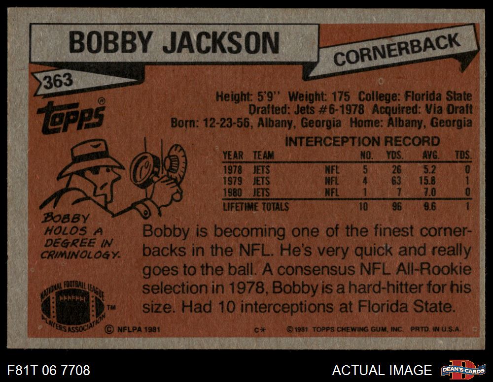 1981 Topps Football Cards (6,264 available)1981 Topps Jets (329 available)