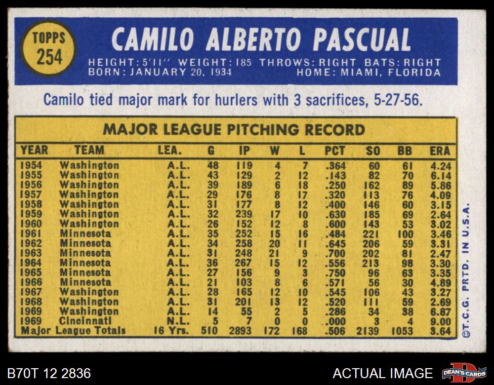 1970 Topps #254 Camilo Pascual 6 - EX/MT